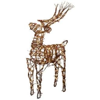 Get in the spirit of the season with this lighted standing reindeer. A metal frame is pre-strung with 200 brilliant mini-lights. This animated fellow moves his head side to side for extra fun. Collapsible construction for easy use and storage. A great addition to your Christmas decorations. Brown metal wire frame. Head moves left and right. Collapsible. Indoor/outdoor use. 200 pre-attached lights. 48" high.