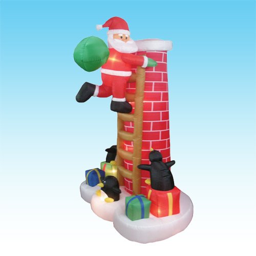 8.5 Foot Inflatable Christmas Santa Claus Climbing Chimney + Penguins Gift Box