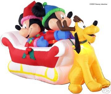 Airblown Inflatable 8 Ft Long Disney Mickey Minnie Pluto Sleigh