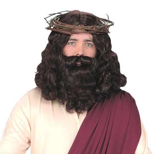 Portray the spiritual leader and bring light and lift to the spiritual body of mankind with the help of our Jesus Christ Wig and Beard. Jesus is known as the light of the world and he that followeth him shall not walk in darkness, but shall have the light of life. Our Jesus Wig and Beard set features a full head of brown wavy hair and a full long beard with attached moustache. Made of high quality synthetic fiber, there are loads of volume with loose curls and plenty of wave. You will have the crowds remembering his many miracles including how he made blind people see, turned water into wine, walked on water and rose up from the dead. Our adult Jesus Wig and Beard will have you spread faith as a righteous icon that is mentioned throughout The Holy Bible. It is a great addition to your Jesus Christ or Biblical character costume for Halloween, Christmas, Easter, Church events or theatrical performances. One size fits teens and adults. Crown of thorns not included.